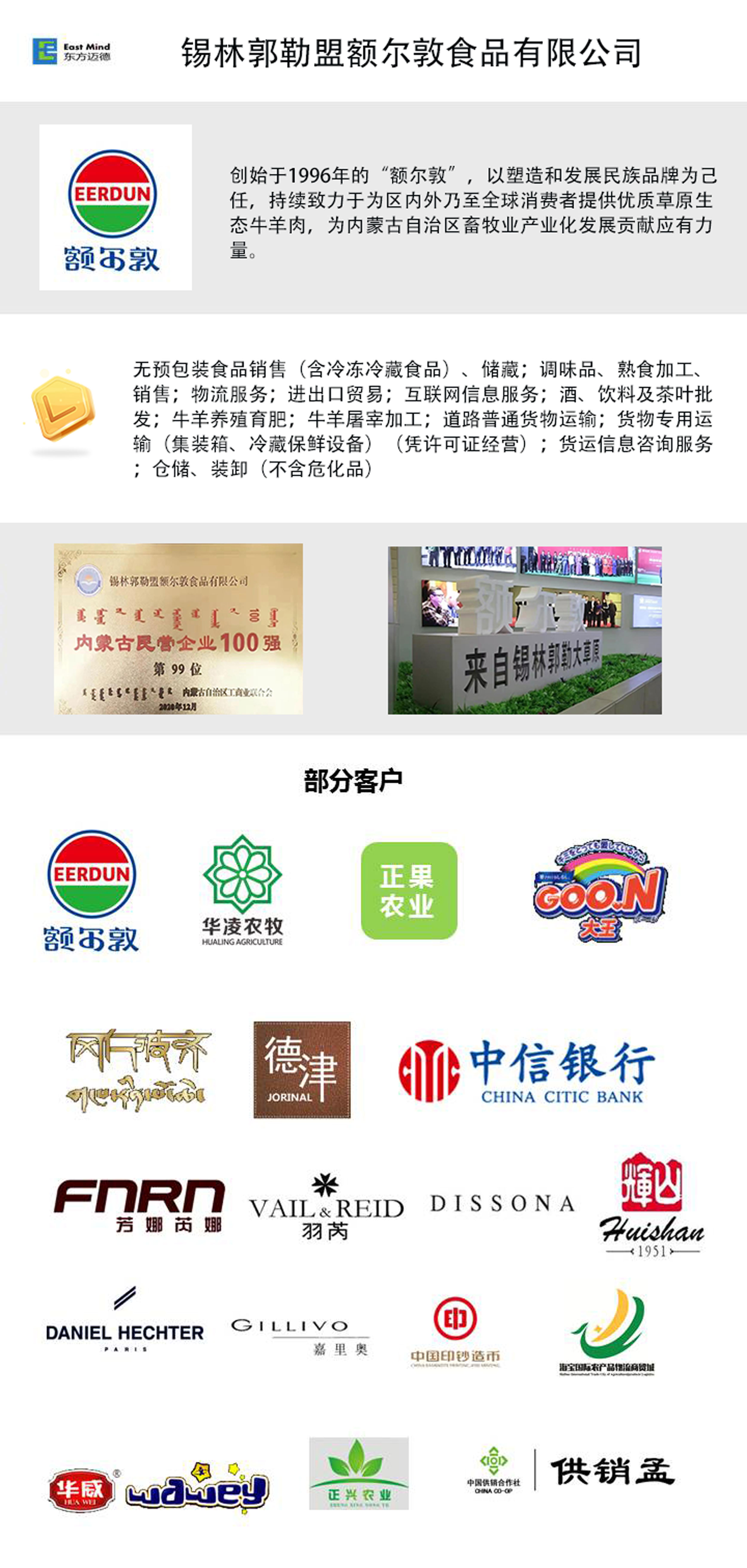 創始于1996年的“額爾敦”,以塑造和發展民族品牌為己任,持續致力于為區內外乃至全球消費者提供優質草原生態牛羊肉,為內蒙古自治區畜牧業產業化發展貢獻應有力量。...
